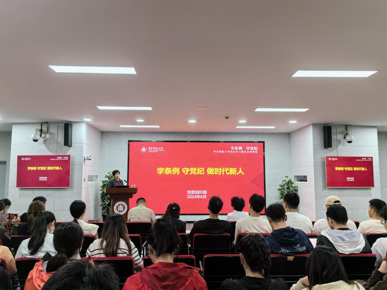 为切实推动党纪学习教育走深走实、见行见效,扎实推进全体党员培训工作,根据教育部和上海市教卫工作党委工作部署和《h动漫 师生党员基本培训工作实施方案》及《h动漫 党委党纪学习教育工作方案》要求,2024年6月5日下午h动漫 党委于学院二楼报告厅开展“坚守党的纪律,做合格共产党员”党纪学习教育主题活动,特邀学校党委组织部副部长谭红岩作主题讲座。本次活动由学院党委副书记李浩主持。
