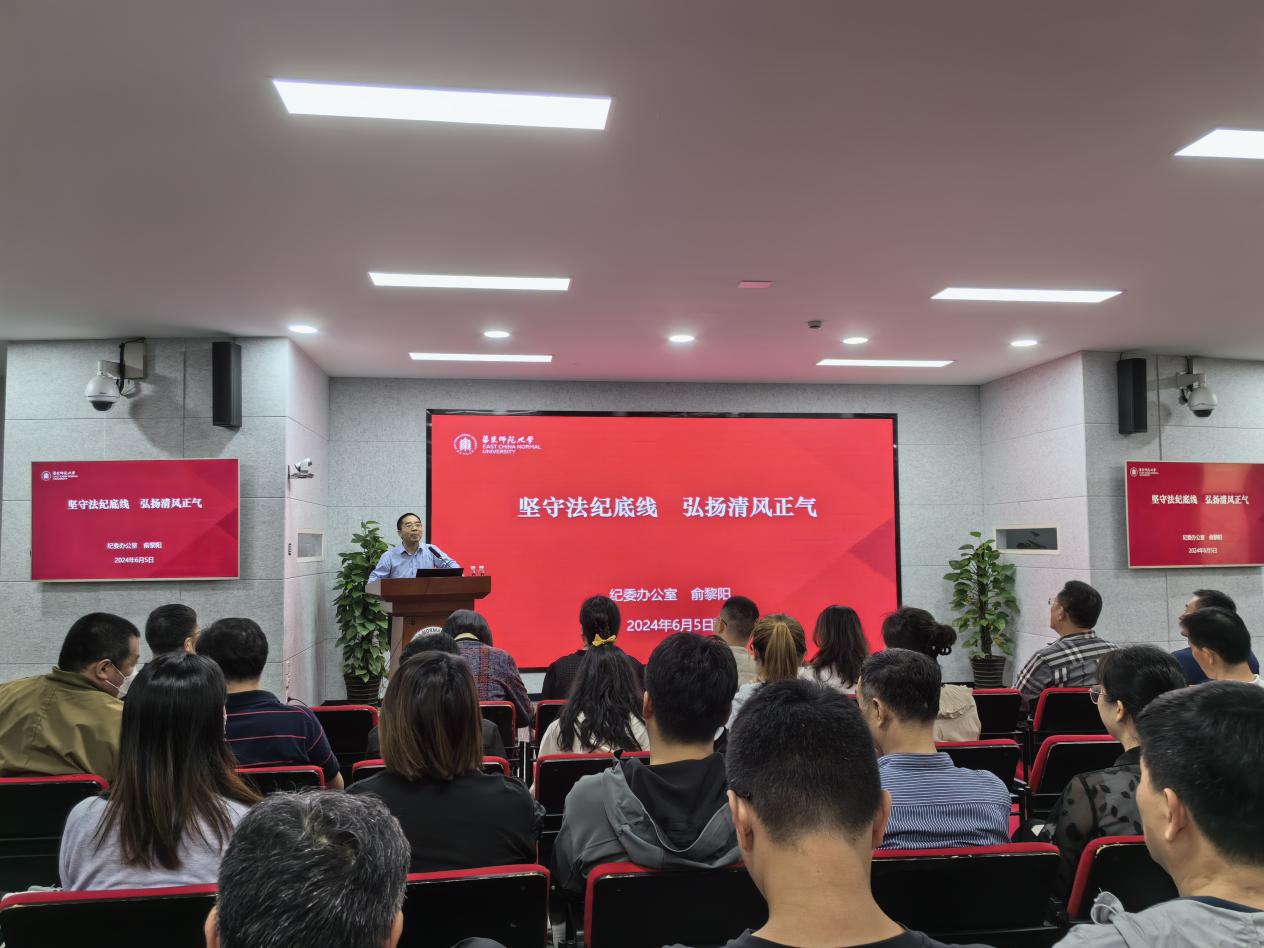 俞黎阳从高校纪检工作的新形势与新任务、持续加固中央八项规定的堤坝、准确理解和执行科研经费管理规定、严格遵守高校教师职业行为准则、高度警惕新的违纪违法行为等五个方面进行阐述,并结合高校教师工作与生活的实际,以身边的典型案例为镜鉴,开展警示教育,正本清源,深刻推进纪律教育。俞黎阳要求广大教职工要始终保持清醒头脑,要知敬畏、存戒惧、守底线,揽镜自照、反躬自省,时刻反省自己,坚定理想信念,严守纪法规矩。
