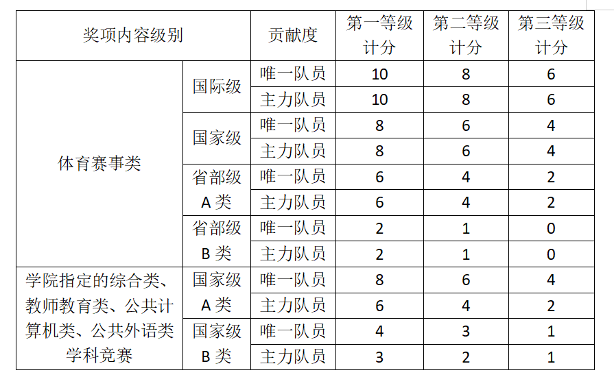 5.校级素质项目加分 | 由 学 校 下 达 相 关 学 院 直 接 计 入 综 合 成 绩。 |