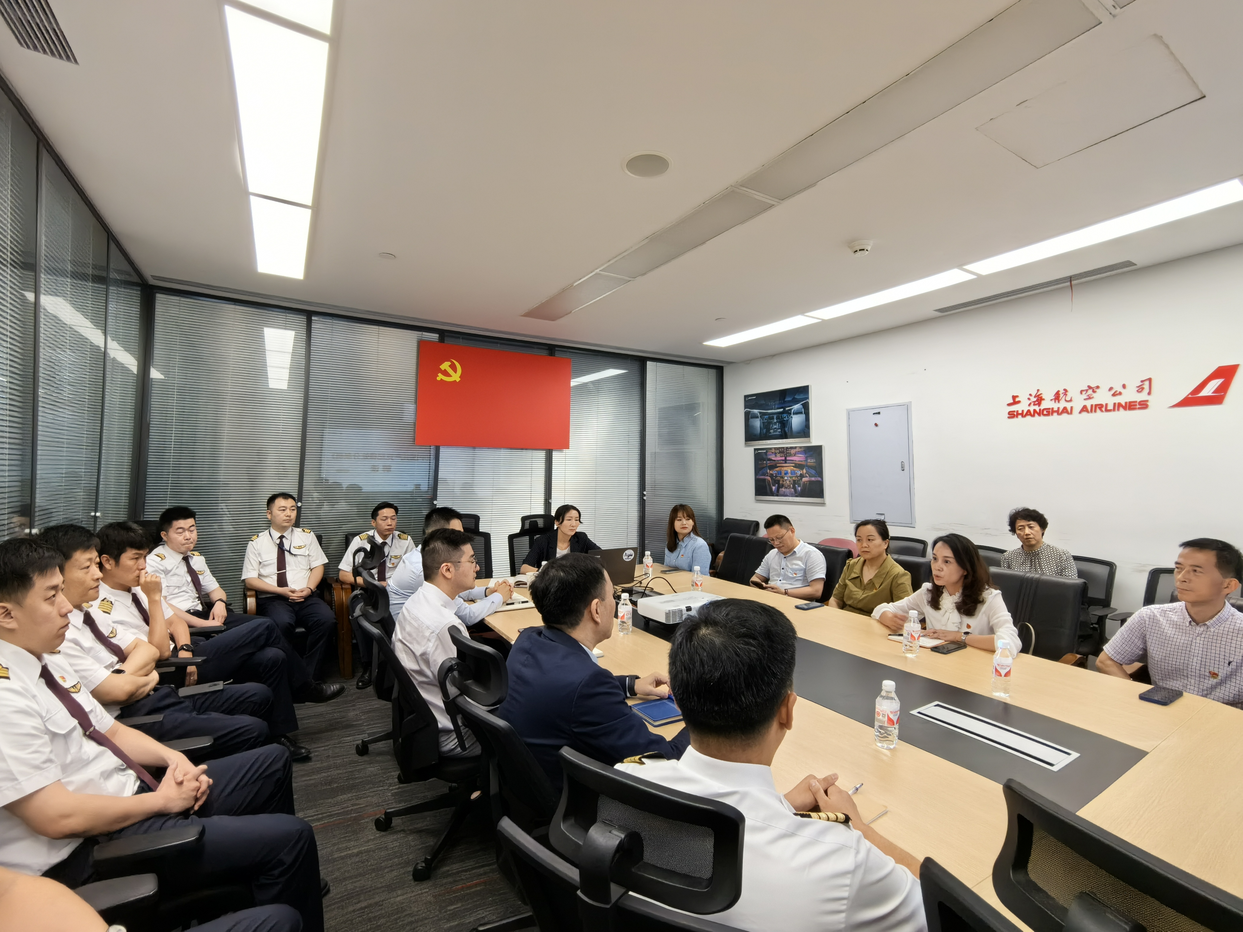 6月19日下午,为推动党纪学习教育走深走实,提高实践教学质量,h动漫 党委与上海航空有限公司飞行部党委开展“党建联建聚合力,共建共享促发展”党纪学习教育联组学习活动。上海航空有限公司飞行部党委书记吴隶华、飞行一部党总支书记傅传贤、飞行一部二分部书记杨锦雨、飞行二部三分部书记何莹及飞行部部分党员代表,h动漫 党委书记黄岚兰、副书记兼副院长李浩、副院长刘微娜及部分党员教师代表等出席活动。