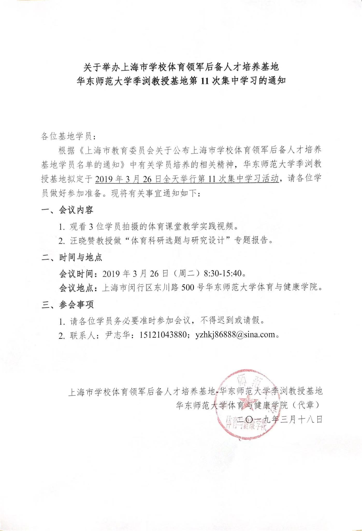 关于举办上海市学校体育领军后背人才培养基地h动漫 季浏教授基地第11次集中学习的通知