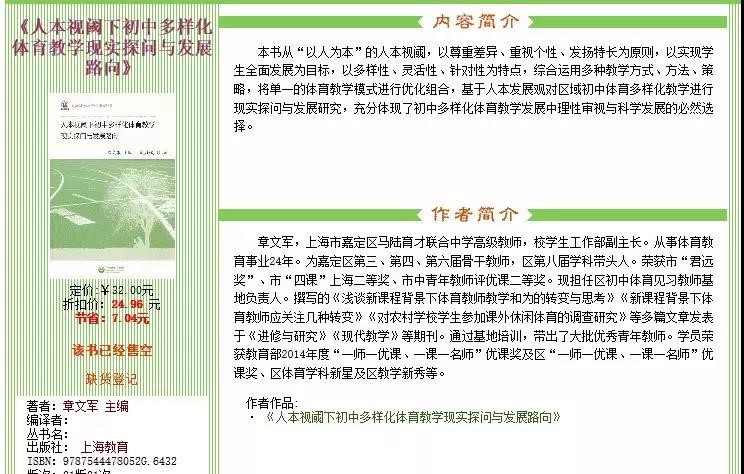 在本次集中学习期间,基地学员、上海市嘉定区马陆育才联合中学的章文军老师还向大家赠送了自己出版的最新著作《人本视阈下初中多样化体育教学现实探问与发展路向》。该著作也是章文军老师在基地学习期间完成的成果之一,很好地展示了基地学员的综合实力。