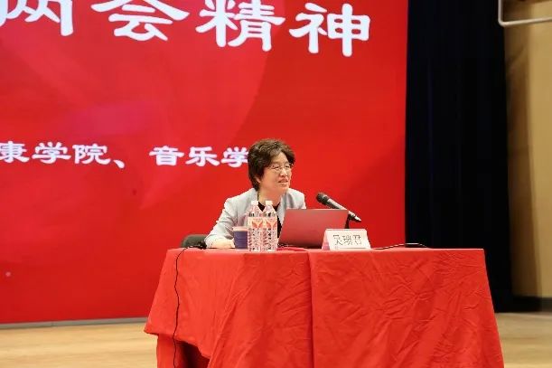 4月16日下午,为传达学习2025年全国两会精神,深入学习贯彻习近平新时代中国特色社会主义思想,助力教育强国建设,h动漫 、传播学院、美术学院、音乐学院在闵行校区音乐厅联合举办全国两会精神专题辅导报告会,特邀全国政协委员、农工党h动漫 委员会主委、图书馆馆长吴瑞君教授作专题报告,四家院系的全体教职工到会学习。报告会由音乐学院党委书记赵旌旌主持。
