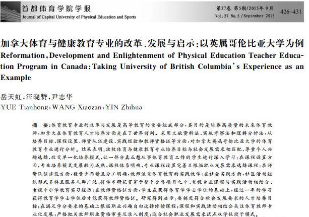 《加拿大体育与健康教育专业的改革、发展与启示:以英属哥伦比亚大学为例》