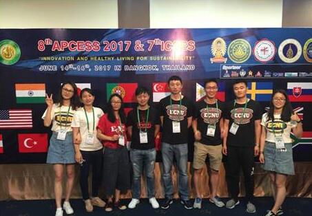 2017年6月13日至6月17日,在汪晓赞教授的指导下和支持下,青年教师尹志华博士,在读博士生张李强、陶小娟,在读硕士生陈美媛、程金霞、郭明明、胡立锋、贾于宁等一行8人赴泰国曼谷参加了第八届亚太运动与运动科学会议(8THAsia-Pacific Conference on Exercise and Sports Science2017)及第七届国际体育与运动科学会议(7THInternational Conference onSport and Exercise Science)。