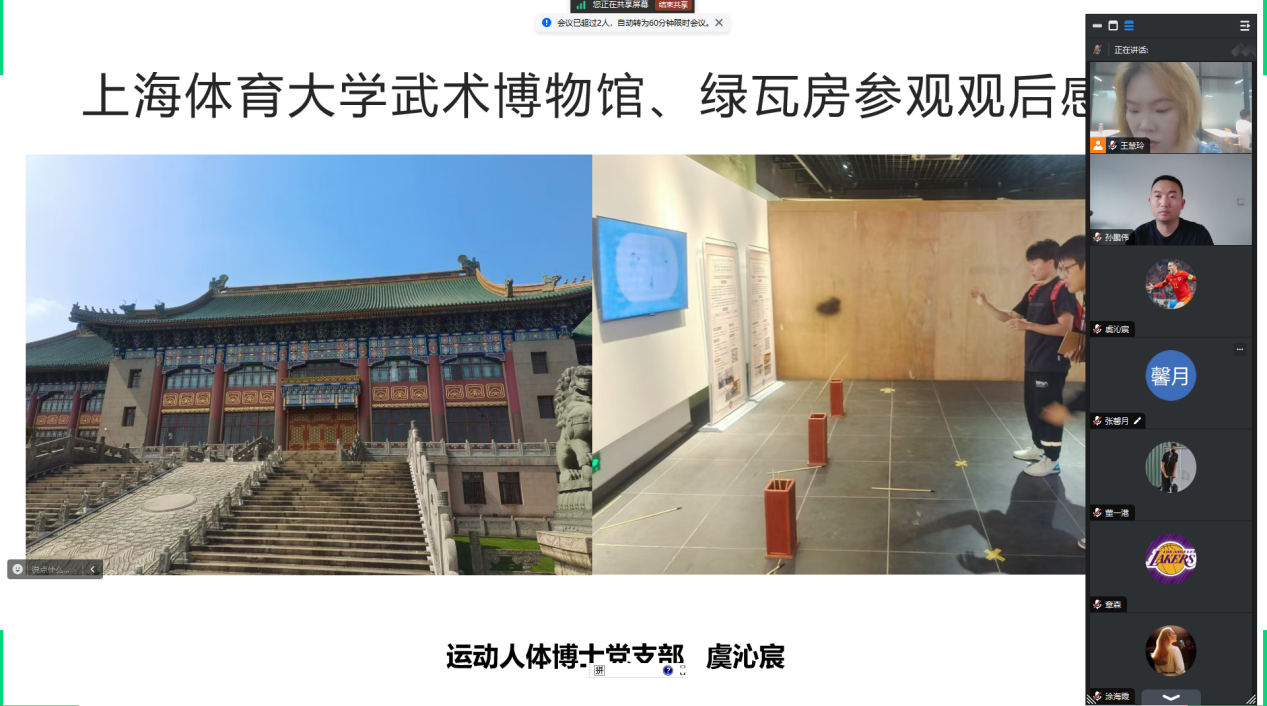 中国武术博物馆充分展示了中华武术深厚的历史与文化。琉璃绿瓦、飞檐斗拱、雕梁彩绘……在上海体育大学校园里有一栋著名的绿瓦大楼,见证了体育强国的征程。虞沁宸同志分享了她参观上海体育大学武术博物馆、绿瓦房的所思所想:“通过在上海体育大学的参观学习,我对体育的历史与成长轨迹有了更深层次的了解,作为体育人,一定要更加努力学习,打磨自己的专业技术能力,将体育文化的交接棒继续传承下去,并且为打造体育强国贡献自己的一份力量。