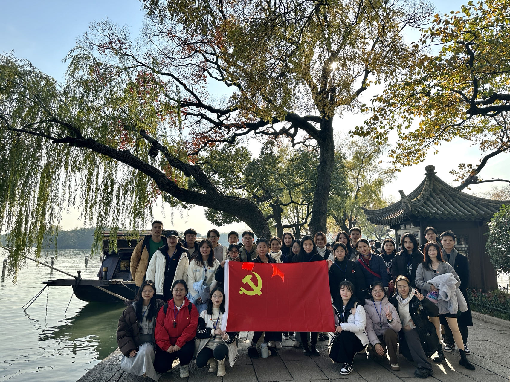 昔日承载着中华民族希望的小小红船,早已穿过历史的惊涛骇浪,成为领航中国行稳致远的雄伟巨轮。多少楼台烟雨中,烟雨楼向我们诉说着历史的辉煌,又道出过往的沉重。为深入学习贯彻习近平新时代中国特色社会主义思想,不断提升思政育人实效,激励全体党员不忘初心使命、缅怀革命先烈、传承红色基因、弘扬“红船精神”、坚定理想信念、保持奋进姿态。2023年12月2日,由体育人文学硕党支部牵头,联合运动人体学硕党支部与体教民传学硕党支部,组织各支部党员共赴嘉兴,携手走进南湖革命纪念馆并乘游船登上烟雨楼参观。