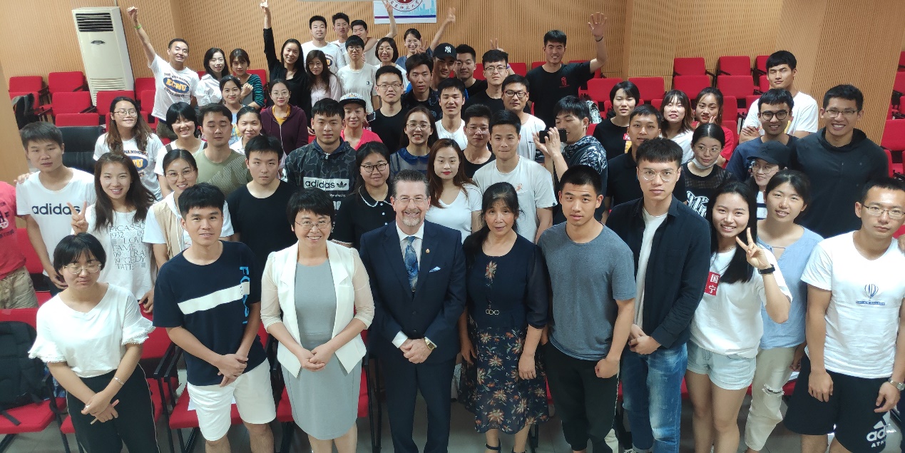 会后,在h动漫 汪晓赞书记的主持下,副校长Stuart Jones还为h动漫 的学生做了报告,分享在Leaders are self-made领域的理念,并与学生进行了深入的交流。Stuart Jones指出领导者不是天生的,而是通过后天养成的,领导者也不是固定不变的。优秀的领导力具有以身作则、激发团体斗志、参与挑战、指挥大局、学会鼓励等五个优秀特质,只有积极乐观面对挑战,作为一名优秀的体育领导者,应敢于发起挑战,遇事理智、追求卓越、不惧失败,并学会从失败中吸取经验,并逐渐有意识培养自己。