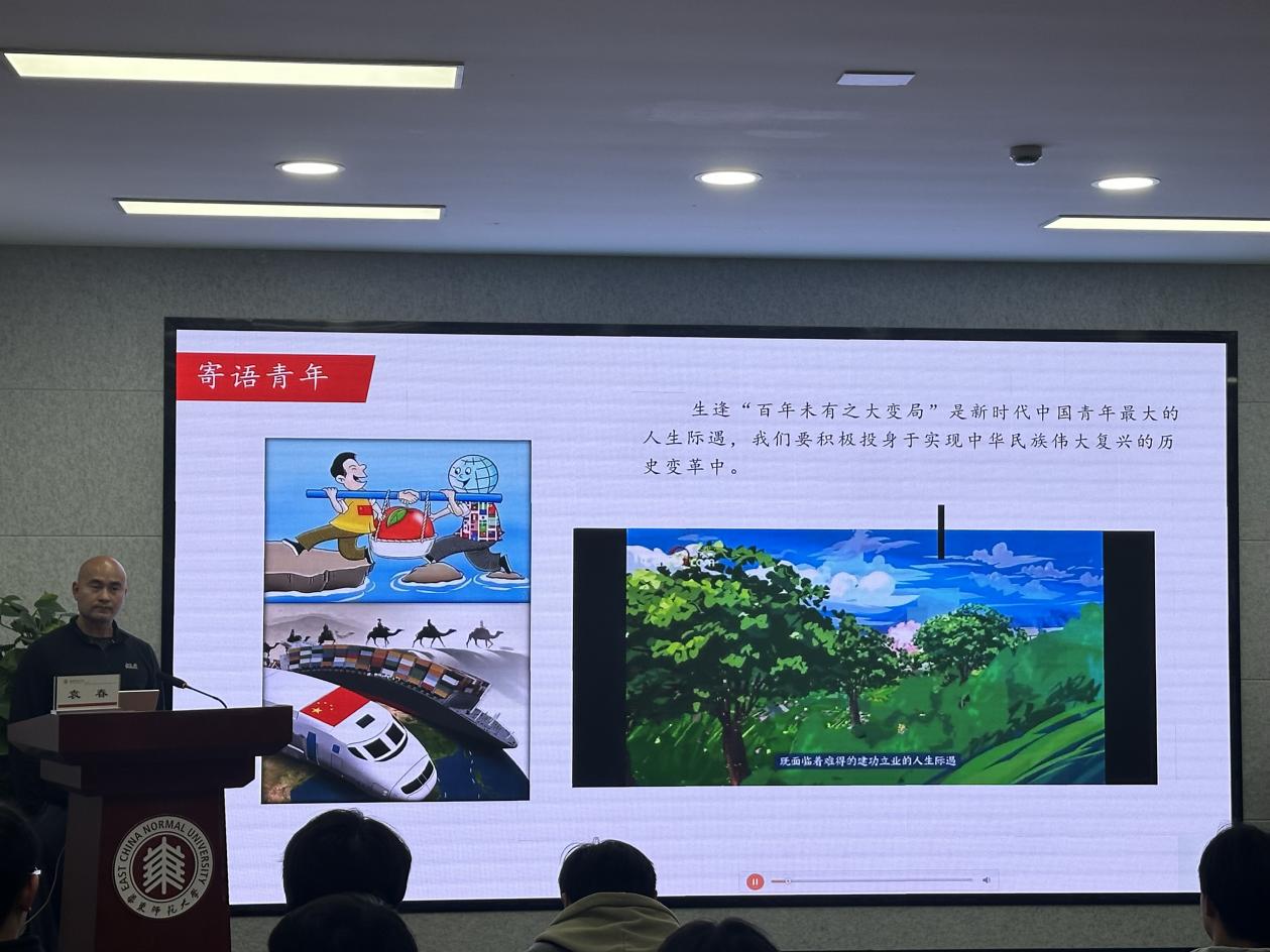 随后,袁春以“激扬青春力量,彰显时代担当,规范发展党员流程,争做合格党员”为主题进行了党课宣讲。党课主要分为“青年和党组织的双向奔赴”“为什么要加入中国共产党?”以及“如何加入党组织”三个板块。课堂强调了青年在国家兴旺发达和民族振兴中的关键作用,通过介绍一些近代中国跨时代意义的革命运动,如辛亥革命、新文化运动、五四运动等向积极分子们展现了中国青年在社会动荡时中流砥柱的重要作用,并引用了习近平总书记在中国共产党第二十次全国代表大会上的讲话,激励青年坚定信念、勇担责任,为实现中华民族伟大复兴贡献力量。