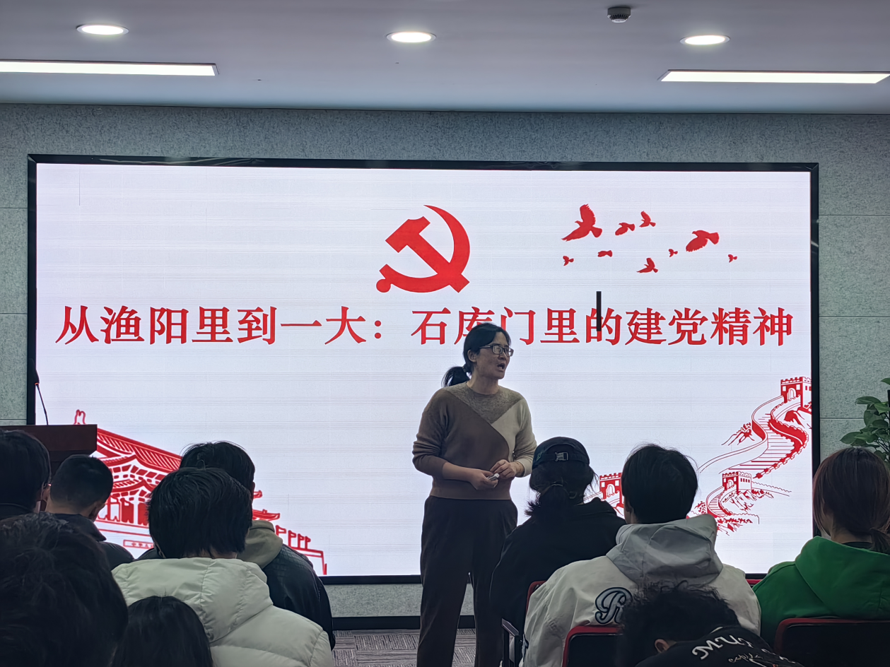 黄亚玲为积极分子们带来了一场主题为“从渔阳里到一大——石库门里的建党精神”的专题讲座。此次授课内容主要分为三大篇章:渔阳里的历史印记、中共一大的辉煌篇章和激荡人心的建党精神。