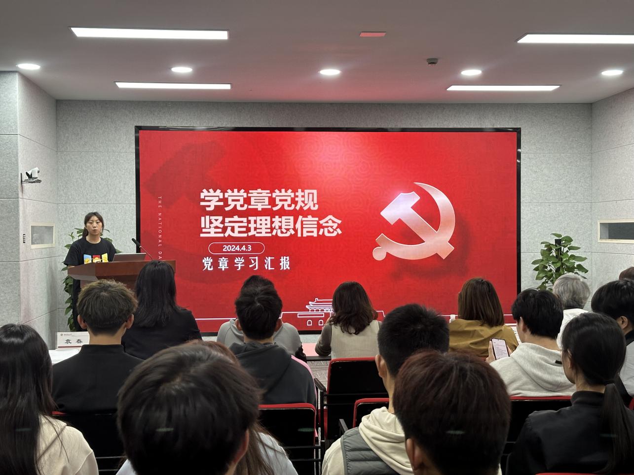 “结业典礼既是终点,也是新的起点”,优秀学员代表李璐瑶说,她深情地汇报了自己在党课党章学习中的心得体会,呼吁大家在今后的生活中要更加努力地学习党的知识,以更高的标准要求自己,向党组织靠拢。