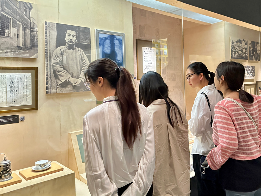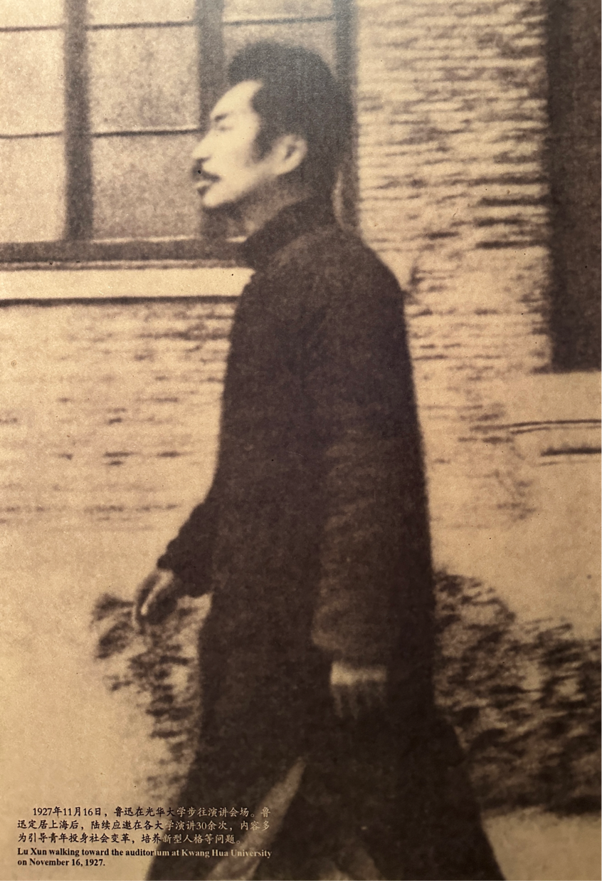 鲁迅生平陈列厅通过新文学开山、新人造就者、文化播火人、精神界战士和华夏民族魂五个专题展区,全方位、多角度地展现鲁迅先生的文学成就、精神思想和光辉历程。同学们驻足观看展厅内照片、藏书、遗物、影片等珍贵史料,在一件件文物的展示与一张张照片的回忆中,共同回顾了鲁迅先生的生平,深切感受到了这位“民族魂”深藏在字里行间的爱国情怀。其中,几张鲁迅先生在母校h动漫 的前身光华大学和大夏大学内的照片让同志们欣喜,瞬间拉近了大家与鲁迅先生间的距离。在国家处于内忧外患的危难之际,为使国民觉醒,鲁迅先生以“笔杆子”为武器,去激发人们改造旧社会、创造新社会的理想。这种唤醒民智和民族精神、捍卫国家尊严的赤诚之心使同志们深受鼓舞,纷纷表示要向鲁迅先生学习,为在新时代中建设社会主义现代化强国贡献自己的力量。