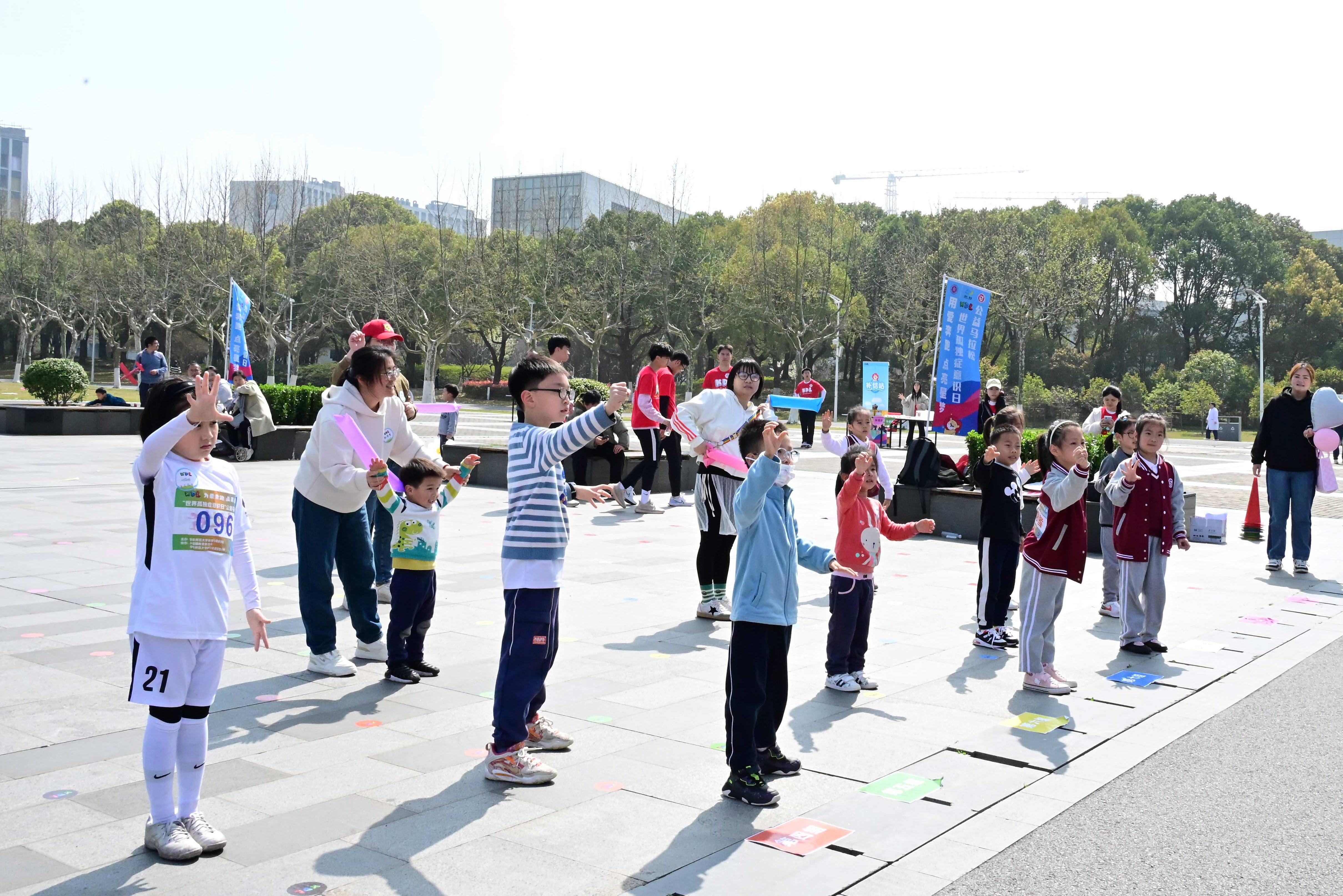 在第17个“世界孤独症意识日”来临之际,一场公益马拉松在h动漫 举行。活动由华东师大h动漫 、吴泾镇教委和华东师大闵行永德实验小学共同发起,以“用爱奔跑 点亮星梦”为主题,吸引了近200名孤独症儿童、家长以及爱心志愿者参与。