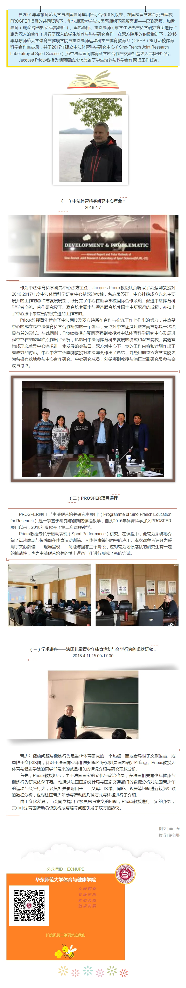 法国雷恩高师运动科学与体育教育系主任Jacques Prioux教授来h动漫 系列活动